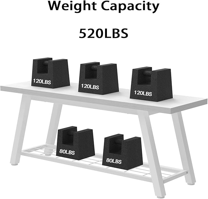 - Multifunctional Design.This simple Shoe Bench with industrial-inspired details and simplicity clean lines, makes your space look more neat, generous and comfortable.It can be used as shoe rack for entryway, coffee table for living room, bed end storage bench for bedroom, sofa rack, plant rack and so on.